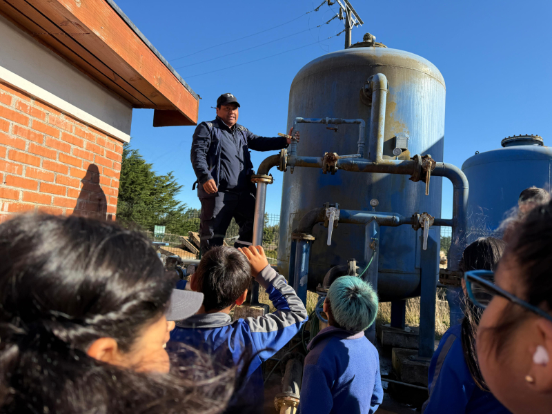 Más de 30 alumnas y alumnos asistieron a las dependencias del servicio sanitario rural del sector, para conocer el proceso de captación y distribución del agua que llega a cada una de las casas de Pehuén.